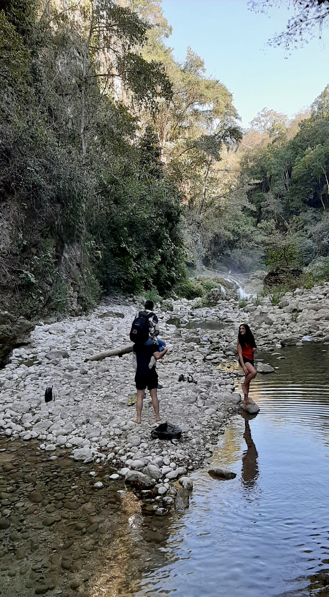 La próxima semana, Marisa y yo hicemos galletas con su mama (de nuez y azúcar glass, una receta muy similar a la que usamos mi familia) para el cumpleaños de Perla el día siguiente. No di cuenta que extrañaba tanto a hornear hasta esa noche. Encontramos juntas mucha placer por el arte de la cocina. La fiestita en el patio interior nos pasó suavemente con mucha risa. Más temprano al día, fuimos Bertha, Sergio y yo a Micos, apenas afuera de la ciudad. Un río bonito con pozas (profundas a mi, pero que parecían bajos a ellos, por falta de la lluvia), cascadas pequeñas y cuevas abajo. Estuvimos los únicos en ese lugar también, un evento muy especial y raro por un sitio tan cerca a la ciudad.