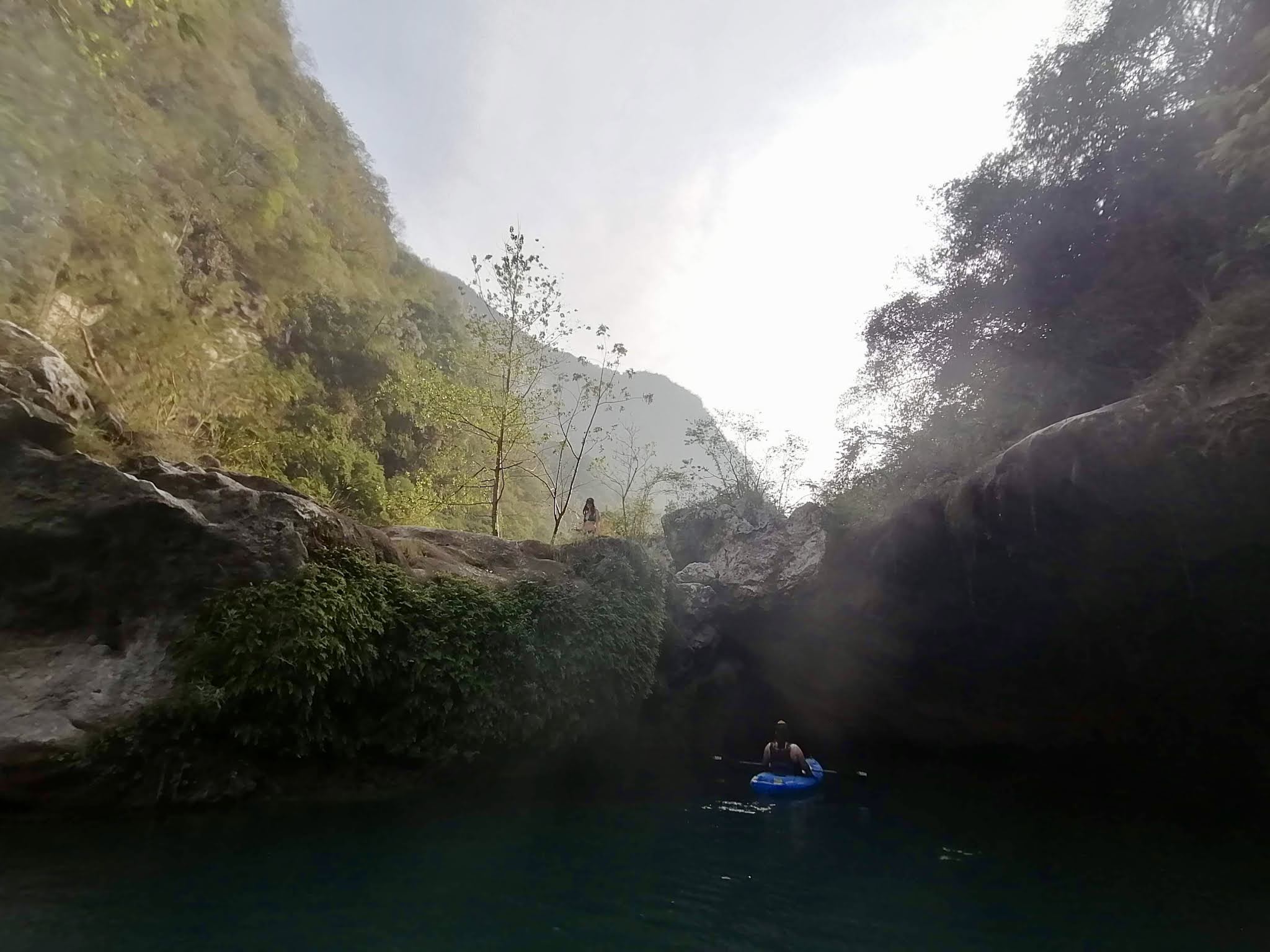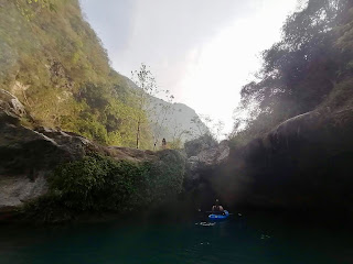 El domingo, fuimos un grupo al otro Puente de Díos donde andamos en kayak. Me concentré intensamente en mi respiración y postura, tratando de remar lo más rápido y eficientemente que pude, mientras de usar todos los músculos. Se sintió bien empujar mi cuerpo así. Llegamos a un punto donde metimos en el agua, buceando del acantilado y cediendo al silencio de un lugar vacío sino por nosotros mismos. No sé exactamente cuantas horas pasemos allí, adentro de esa atmósfera tan rica y pacífica. Después de regresarnos a Valles, paramos de nuevo por nieve en Palmar, a lo mejor por la cuarta vez en seis días. ¡Un sabor diferente cada vez!