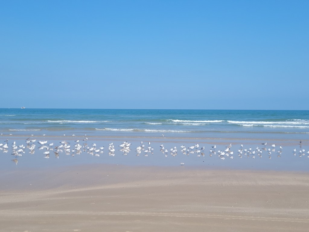 Both the land and sea gulls come to rest on the sand at the hunting hour’s close. Huddling together, and tucking heads into their soft downy chests to protect against that harsh Yucatan winter.