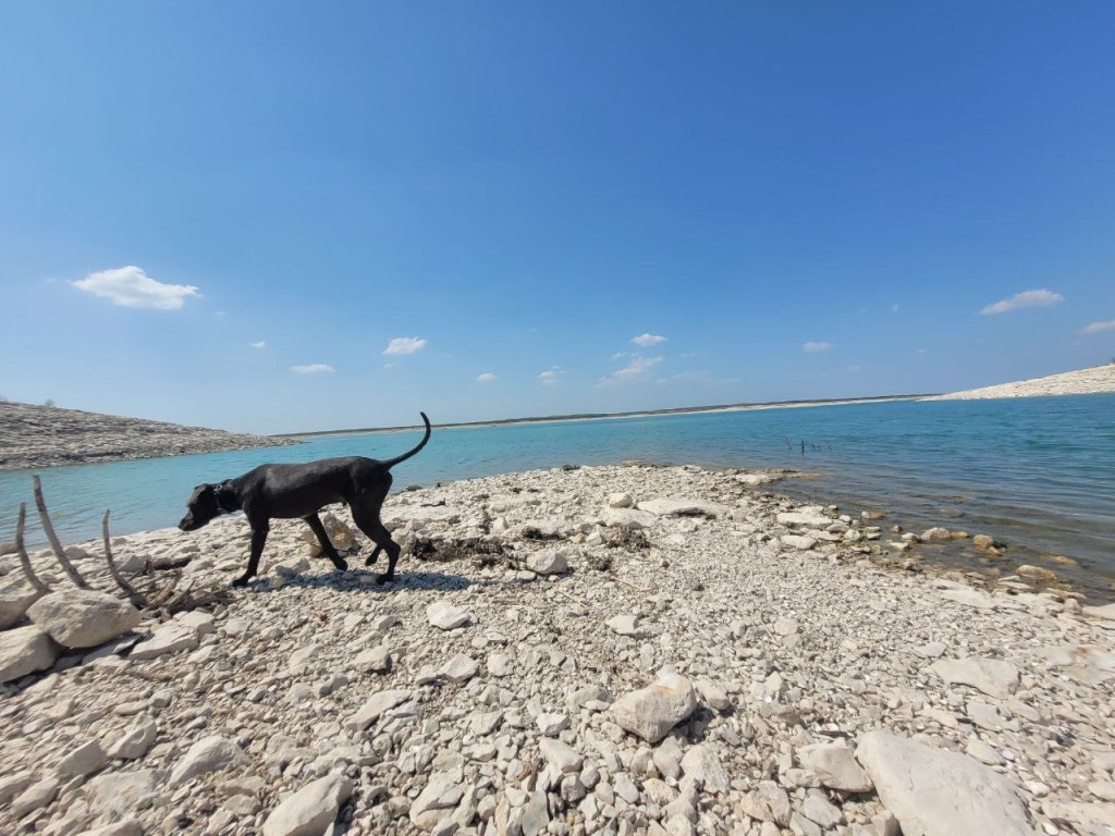 Estrenando mi casita de campaña en Texas, en un sitio de tierra BSM al lado del río que encontré después de que terminaron mis datos, y nadar sin traje con Chango en Parque de la Amistad, las piedritas grises brillando bajo del sol, yo la única persona en esa bahía del cañón.
