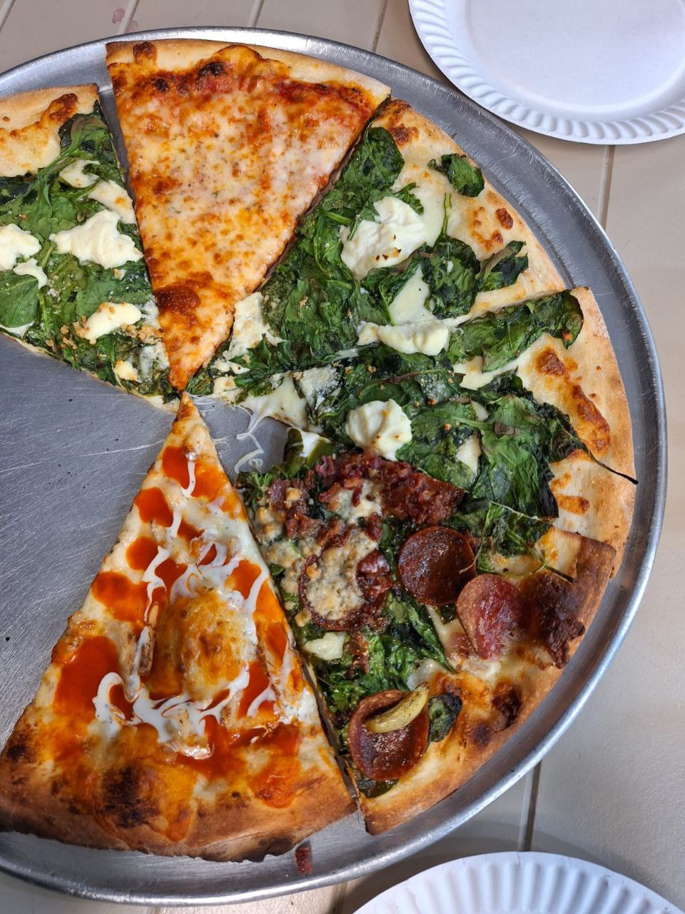 La primera noche en San Diego cuando fui con Bertha a cenar pizza de Bongiornos, pidiendo la orden en español y escuchando Banda en la noche fresca.