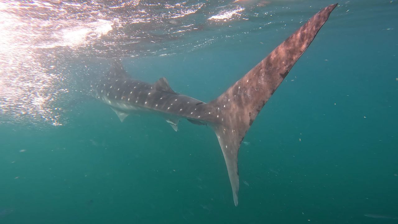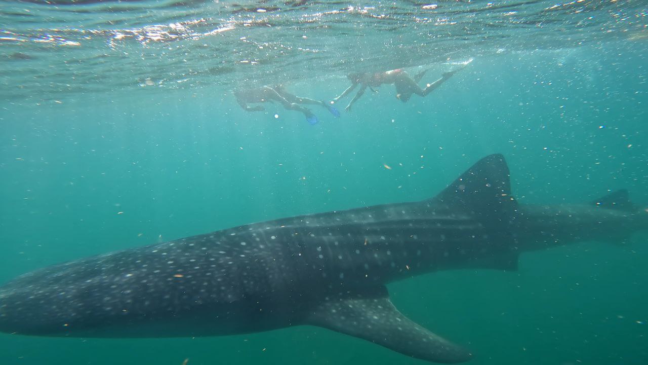 A las 7am, salimos en lancha con 8 otras personas más el capitán y un guía en ruta a ver las tiburones ballenas. En 1 hora alcanzamos a ver algunas aletas rompiéndose la superficie. Estuvieron entre 10 y 14 metros cada una. Parecía que el tiempo se ralentizó y se aceleró a la vez en una manera muy rara. De repente el guía y 2 chicas de nuestra lancha saltaron al agua-los únicos que tenían la chance para estar “a solas” con ella. Luego llegaron al menos 4 lanchas más, cada una con 10 personas. Al menos tomamos turnos para que estuvieron solo 6 personas a la vez con la tiburón ballena. Por fin llegó el momento; bajé al agua con mi visor y aletas de pie, siguiéndola lo más rápido que podía. Sin gran esfuerzo, se movía con gracia y fluida. Eran 5 minutos que cambiaron mi vida; jamás había conocido a un ser con tanta sabiduría. Nunca había compartido espacio y un momento tan íntimo con otro animal tan grande.