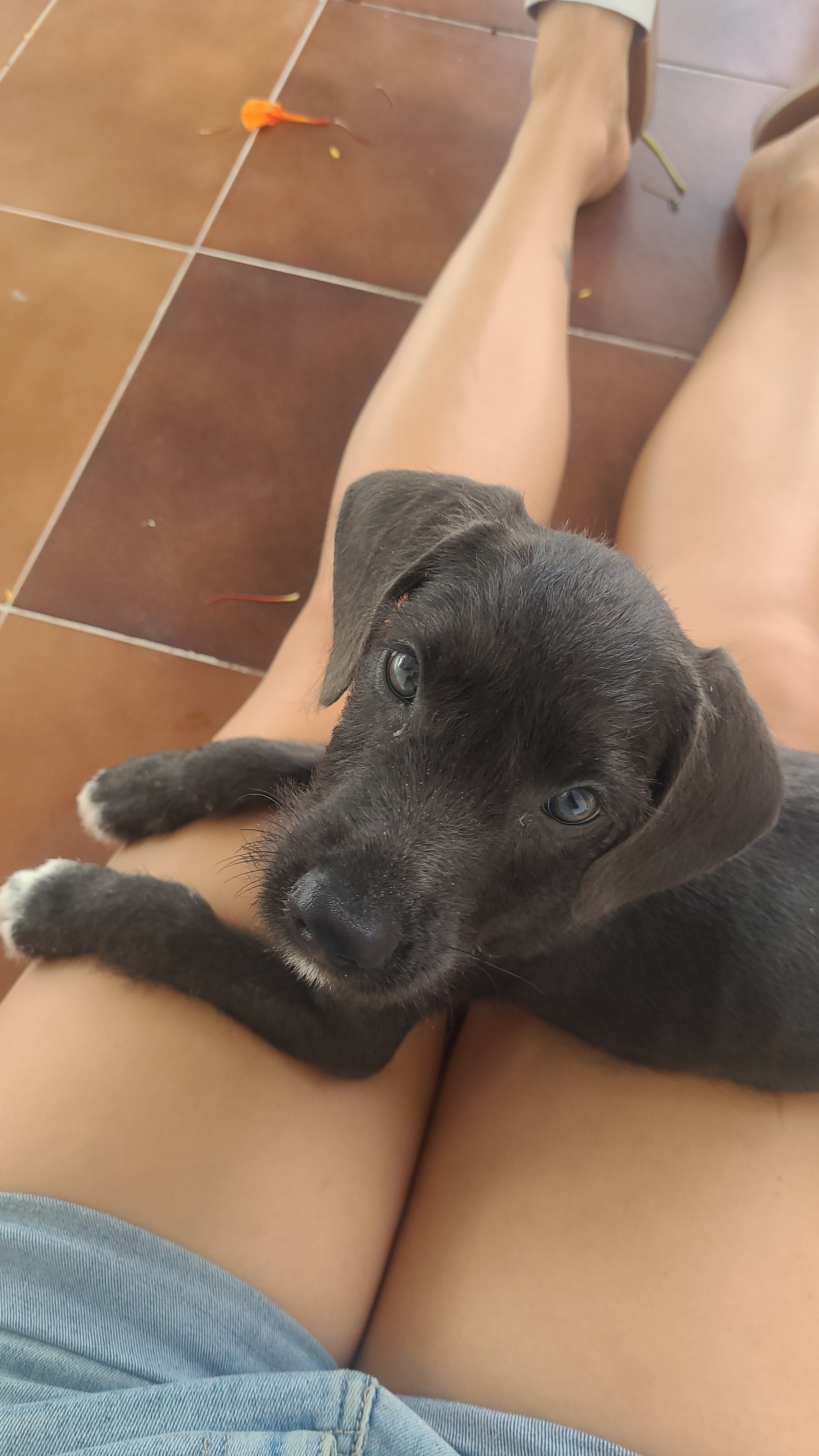 Hace dos meses desde que me puse mamá. Un amigo de una amiga encontró tres cachorritos abajo de un auto en la lluvia. (Los rescató y ya los tres tienen un hogar.) Mi amiga solo me mandó una foto y cuando dije al chavo que le alcanzaré en un par de días, me contestó que me los llevará a mi depa. Me enamoré con el negrito, el más animado, con partes iguales de curiosidad, cariño, y independencia. Una hora después escribí a mi amiga que iba a quedarse conmigo, y inmediatamente me sentía abrumada con toda la responsabilidad que significa para ser madre. Ella me dio mucho confort y consejos para criarle, con toda la confianza que lo haré super bien.